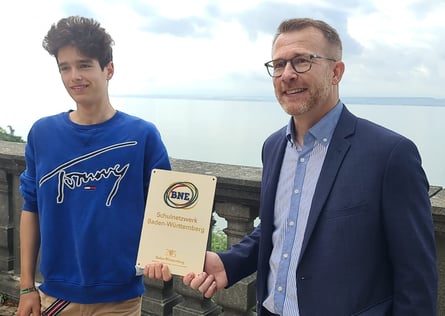 Das Droste-Hülshoff Gymnasium in Meersburg erhielt die Vollmitgliedschaft im Schulnetzwerk BNE (Bildung, Nachhaltigkeit und Entwicklung). Urkunde und Plakette wurden vom BNE-Landeskoordinator
