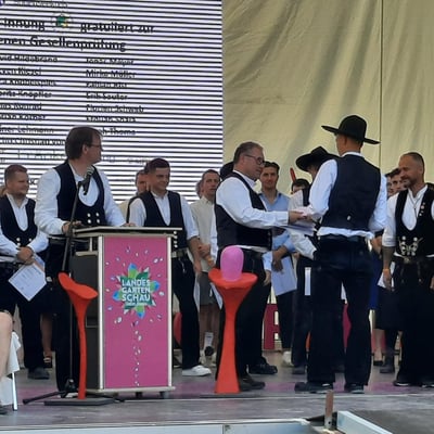 Heute durfte ich auf der Landesgartenschau mir wirklich herrlichem Wetter und wunderschönen Ambiente bei der Vergabe der Gesellenbriefe und der Abschlussfeier dabei sein!