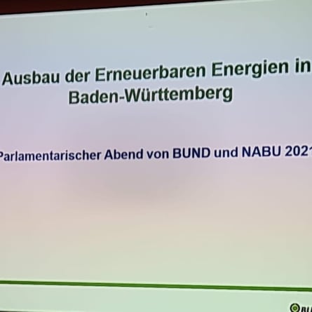 In diesem Jahr haben wir uns beim parlamentarischen Abend zum Thema "Ausbau der Erneuerbaren Energien in Baden-Württemberg" ausgetauscht. Ich danke BUND und NABU für die interessanten