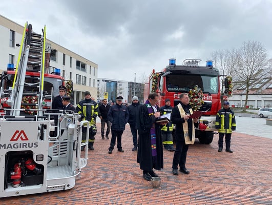 Bürgermeister Manfred Härle konnte der Feuerwehr Salem 3 neue Fahrzeuge übergeben welche ebenfalls ihre Weihe erhielten.