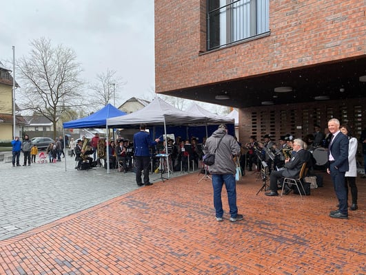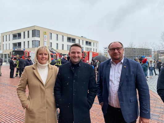 Am Folgetag wurde die Neue Mitte mit ihrem Rathaus und weiterer Infrastruktur eingeweiht und bekam den kirchlichen Segen von Dekan Peter Nicola und Pfarrer Matthias Schmidt.