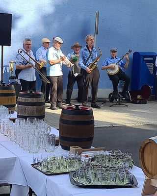 Das Stadtfest in Markdorf von Bürgermeister Georg Riedmann feierlich eröffnet. Zum 44. Mal feiert die Stadt Markdorf und die örtlichen Vereine das Markdorfer Stadtfest. Bei dieser Gelegenheit wurde auch der frisch sanierte Latscheplatz eingeweiht. Der Latschebrunnen erinnert an die Zeiten, als die Markdorfer Mädchen mit ihren "Molkewägele" auf dem Weg zur Molkerei am Platz vor dem Gasthaus Krone vorbei kamen. Hier standen die jungen Burschen, die auf der Suche nach einer weiblichen Bekanntschaft waren und den Mädchen sehnsuchtsvoll nachschauten. Die jungen Männer waren die "Latschen" und sie "latschten" herum - trafen sich hier, gingen vielleicht auch auf und ab. Das war die Zeit der noch vorherrschenden landwirtschaftlichen Prägung der Stadt in den 1920er und 1930er Jahren, als noch der Ochsenbach offen durch die Stadt führte. Wer die Stadt durch das Untere Stadttor betrat, musste über die Brücke über den Bach am Platz vor der Krone vorbei - ein idealer "Aussichtspunkt" für die "Latschen".