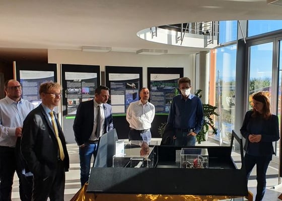 Zum dritten Standorttermin der Unternehmenstour ging es dann zu Space Tech GmbH (STI) in Immenstaad. Nach der Vorstellung wurden wir hier ebenfalls durch das Unternehmen geführt. SpaceTech hat sich nicht nur bei der Entwicklung und Produktion von Solar Arrays in der Raumfahrtbranche einen Namen gemacht. Auch in den Bereichen Mechanismen, Instrumente, Equipment sowie End-to-End-Raumfahrtsystemen ist das Unternehmen tätig.