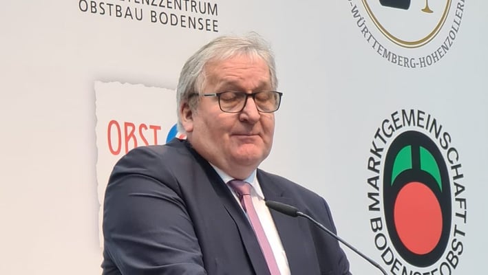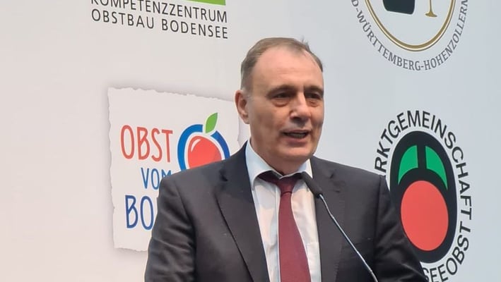 Das Kompetenzzentrum Obstbau Bodensee und die Obstregion Bodensee e.V. veranstalten im Rahmen der Messe Fruchtwelt Bodensee vom 13.-15. Januar 2023 die 41. Bodensee Obstbautage. Zur heutigen Eröffnung begrüßten Erich Röhrenbach, Vorsitzender der Obstregion Bodensee und Dr. Manfred Büchele, Geschäftsführer KOP die diesjährigen Gäste der Veranstaltung. Weitere Grußworte erteilten der Bürgermeister der Stadt Friedrichshafen, Andreas Köster sowie Jens Stechmann, Vorsitzender der Bundesfachgruppe Obstbau und Bundesausschuss Obst und Gemüse und Franz Josef Müller, Präsident Landesverband Erwerbsobstbau Baden-Württemberg e.V.