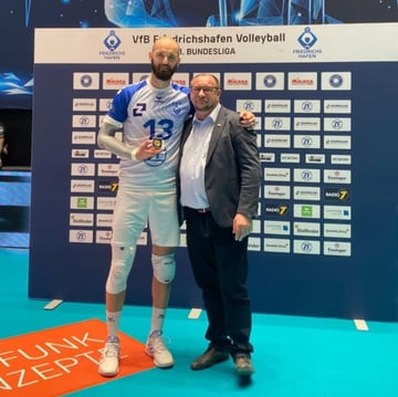 Am gestrigen Sonntag war ich wieder beim VfB Friedrichshafen Volleyball Spiel in der BODENSEE-AIRPORT ARENA zu Gast! Friedrichshafen besiegte Berlin und zieht nun als dritter in die Playoffs ein! Der VfB Friedrichshafen hat im letzten Zwischenrundenspiel Tabellenführer Berlin Recycling Volleys mit 3:1 geschlagen und sich noch Platz drei vor den Playoffs gesichert. Ich durfte die Goldmedaille für den besten Spieler #vojincacic mit der Nr. 13 übergeben! Mit dabei war auch die Lumpenkappelle Löwenzahn e.V. #lk_loewenzahn