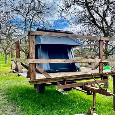 Letzte Woche, pünktlich am Ostersamstag, eröffnete der Obsthof Moll im schönen Deggenhausertal sein Dachzeltdorf. Ich war sehr beeindruckt von dem ansprechenden Übernachtungsangebot, inmitten der Natur. Ab sofort können die Gäste auf originellen, upgecycelten, landwirtschaftlichen Plattformen im fest montierten Dachzelt eines namhaften Herstellers übernachten, und das alles auf der Wiese des Obsthof Moll, unter schönen, alten Hochstämmen. Der 90 Jahre alte Hof liegt mit seinen drei Hektar umgeben von Wiesen und Wäldern zwischen Flora und Fauna im Hinterland vom Bodensee. Die lieben Gastgeber, Melli & Patrick Moll, freuen sich auf viele Naturliebhabergäste. Sie zeigen ihnen die Unterkünfte und verraten gerne etwas über ihre traditionelle Landwirtschaft. Die Dachzelte sowie SUPs und anderes Zubehör können auch direkt vor Ort erworben werden. Ganz lieben Dank für die Einladung und die Führung über den schönen Obsthof Moll! Mehr Infos über den bio-zertifizierten Hof und sein Angebot findet ihr hier: https://obsthof-moll.de/
