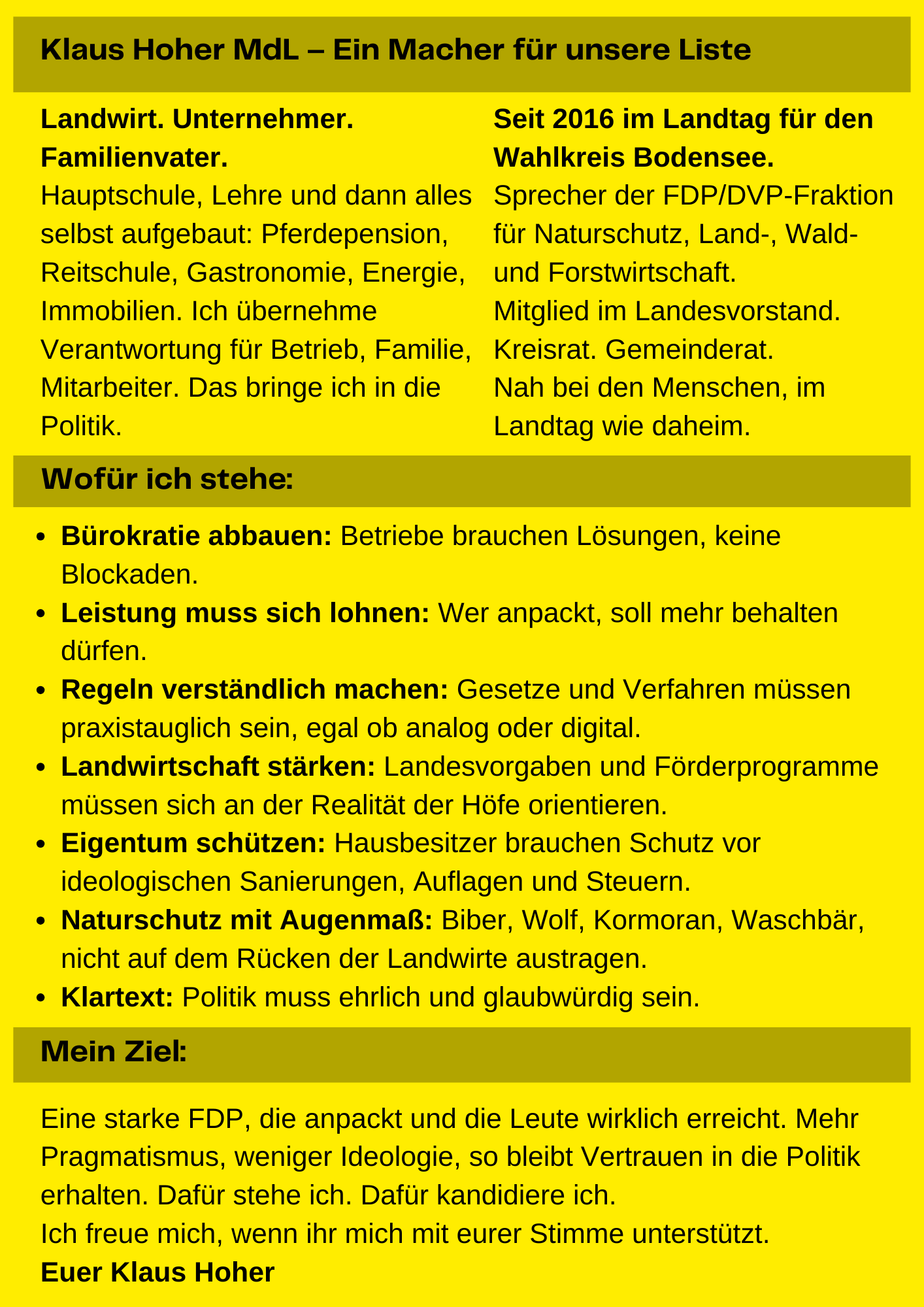 Bei der Zweitstimme hat jede Partei eine Landesliste, ich bin auf Platz 13. Deshalb sind für mich die Zweitstimmen besonders wichtig. Nur mit ausreichend Zweitstimmen für die FDP komme ich wieder in den Landtag von Baden-Württemberg und darf Ihre Interessen und unsere Region weiter vertreten.