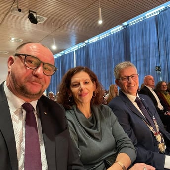 Zweite Station war der Neujahrsempfang in Meersburg. In der #Sommertalhalle begrüßte Bürgermeister Robert Scherer zusammen mit seiner Gattin Tina 300 Gäste persönlich mit Handschlag. Zahlreiche Honoratioren aus Politik und Wirtschaft waren ebenso anwesend wie Vereinsvorstände, Gemeinderatsmitglieder oder städtische Mitarbeiter. Auch viele Neubürger kamen zum Empfang bei dem Scherer bei einem Jahresrück,- und Ausblick auf die aktuellen Themen der Gemeinde einging. Die Meersburger...