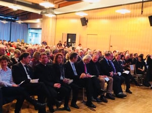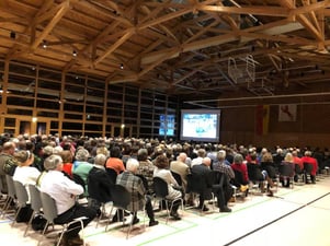 Die Stadthalle war so prall gefüllt, dass Bürgermeister Georg Riedmann sogar seinen Sitzplatz an einen Bürger weiter gab. Riedmann lobte die gute Zusammenarbeit mit den umliegenden Gemeinden