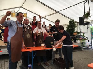 Ein gemütlicher Abend in Markdorf mit Bürgermeister Georg Riedmann und den Markdorfer Gemeinderäten beim Fassanstich und anschließend bei köstlichem elsässischen Flammkuchen in der Laube der