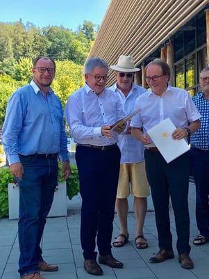 Oberbürgermeister von Überlingen - und der aktuelle Geschäftsführer, Herr Dr. Andreas Huther. Herr Bommer hat mit viel Mut und Ehrgeiz, aber auch Ausdauer und Glück, dieses mittelständische