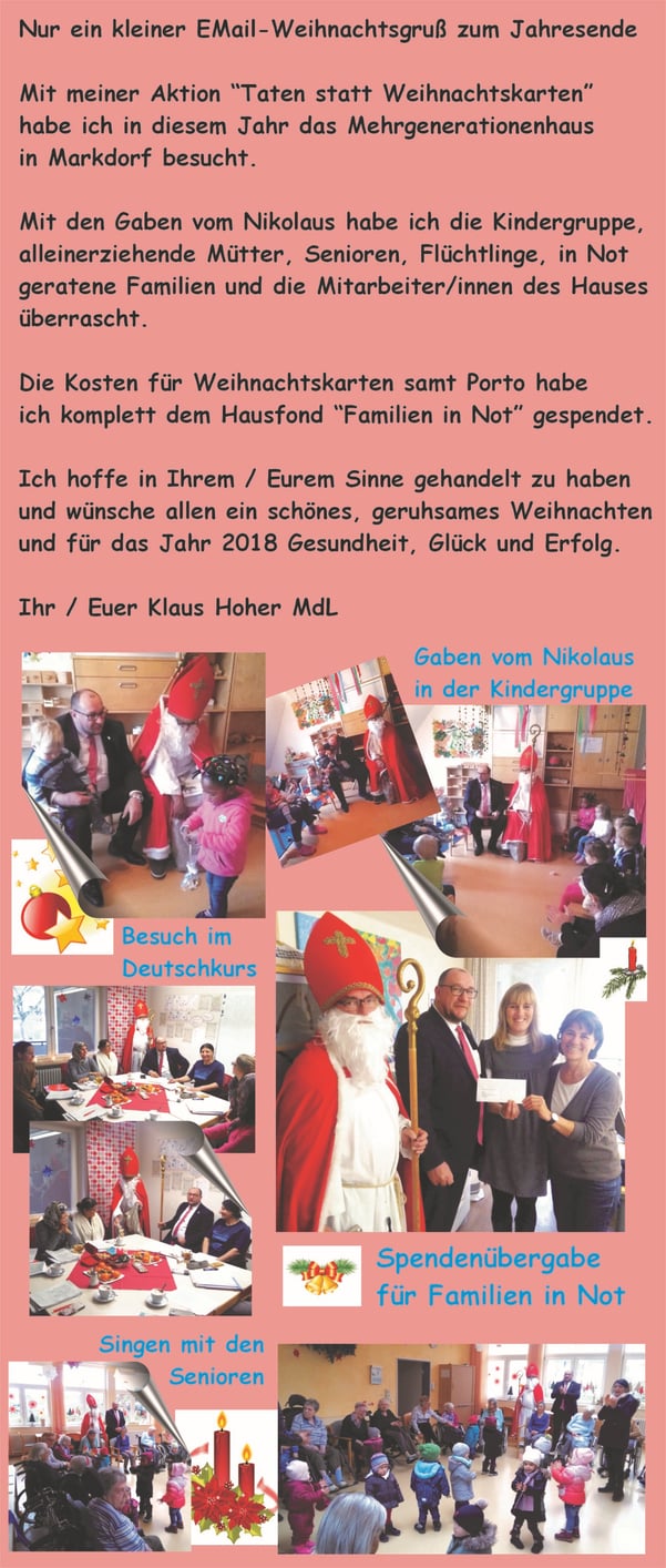 auf, eine bereitgelegte Postkarte auszufüllen und aufzuschreiben, was sie im Jahr 2018 bewegt . Clown Calli bringt die Zuschauer zum Lachen.