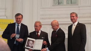 Im Anschluss an die Verleihung konnte beim Stehempfang diskutiert und sich ausgetauscht werden. Musikalisch unterhielt Quattro Brass.