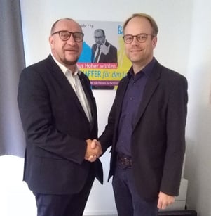 Landwirt und Schäfer Roman Mogg aus Wintersulgen zum Meinungsaustausch im Wahlkreisbüro. Gesprächsthemen waren u.a. Betriebsprüfungen zum Tierwohl und das Volksbegehren Artenschutz und dessen